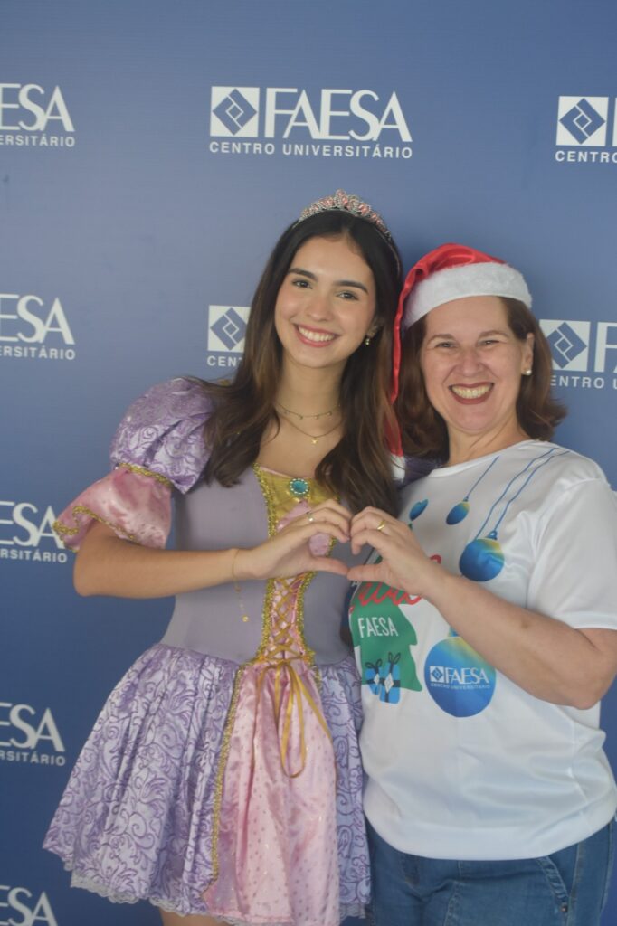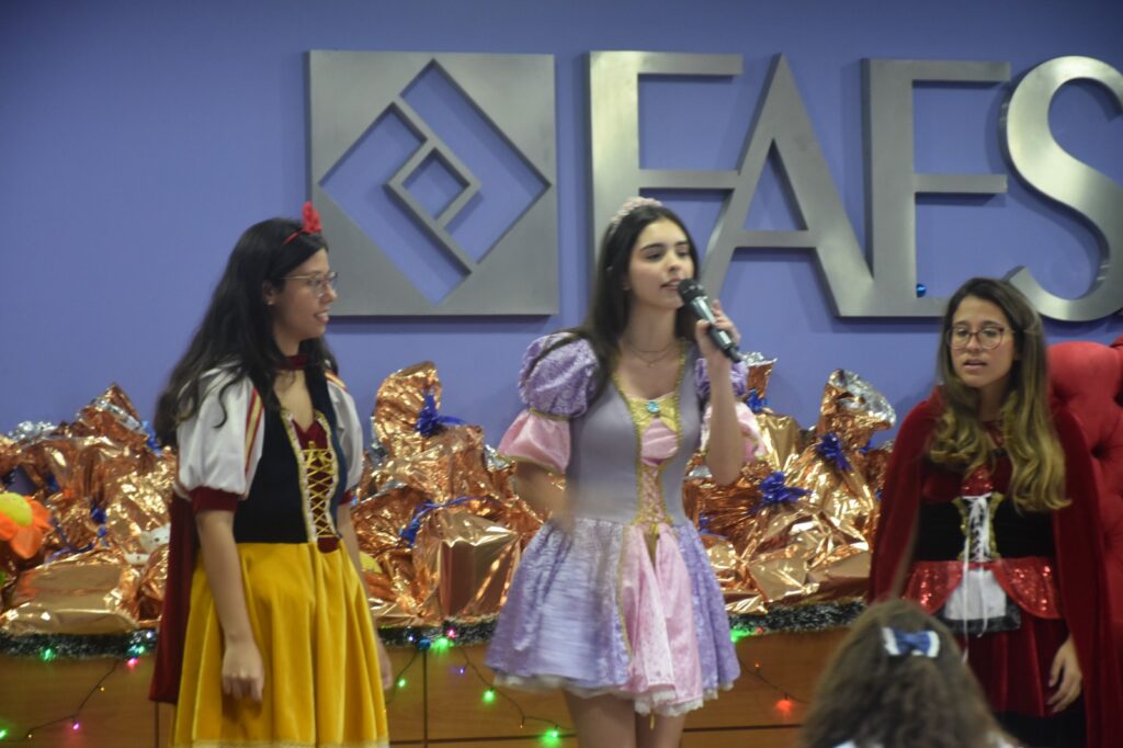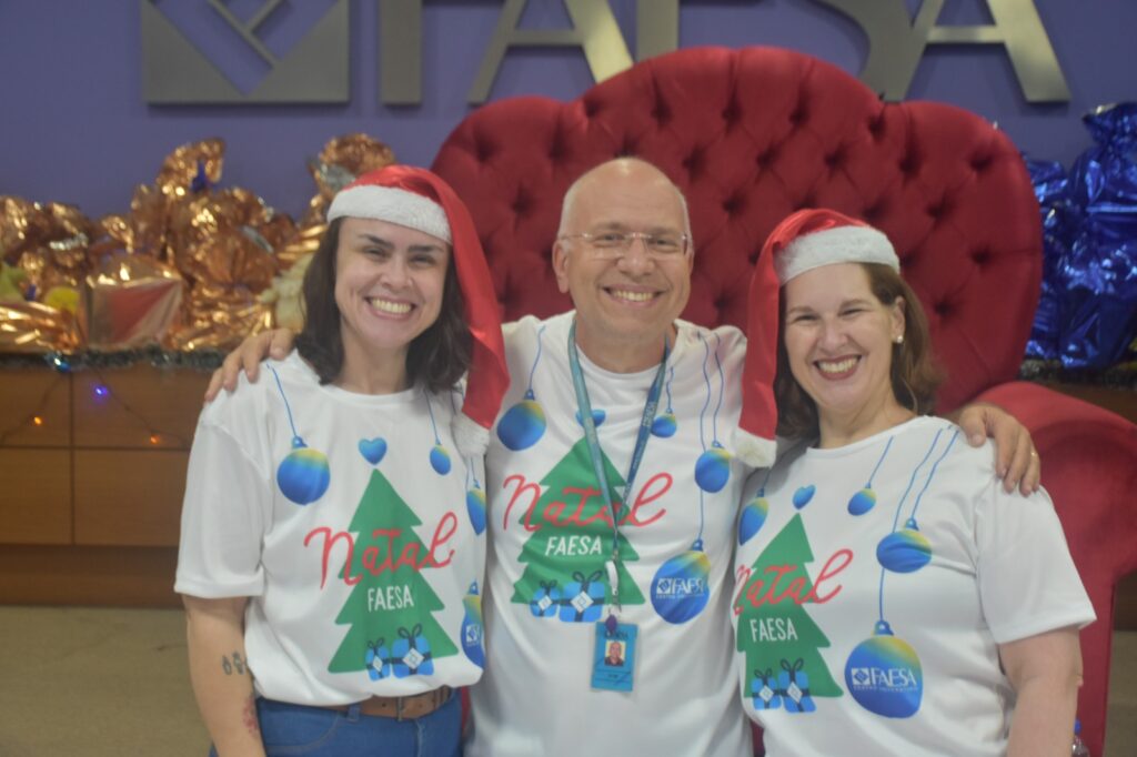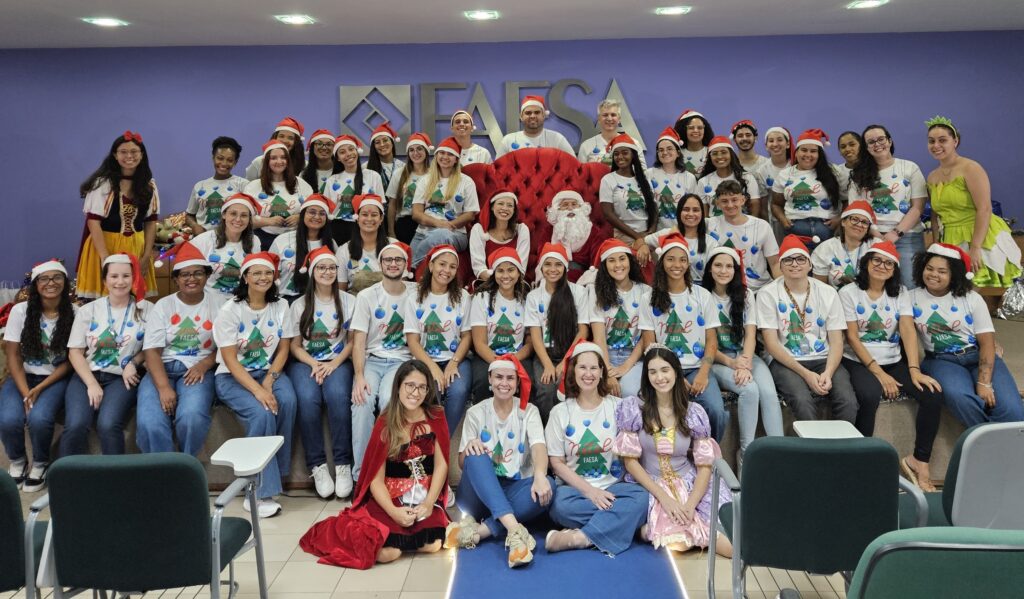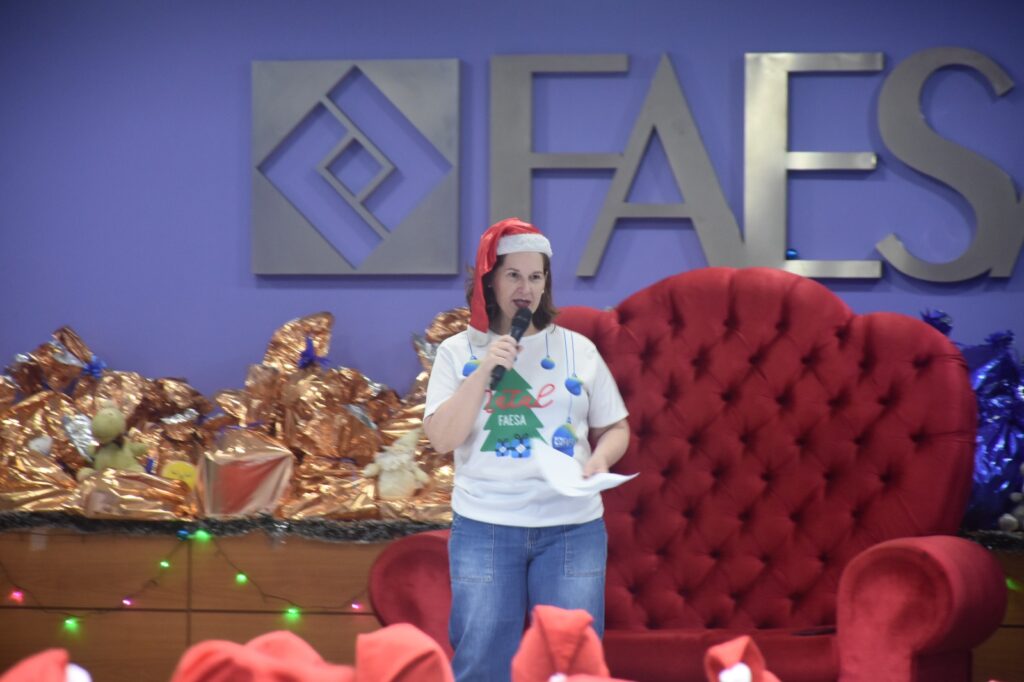 Há 19 anos, a magia do Natal é compartilhada pela FAESA Centro Universitário com as crianças. Um evento que reforça o espírito da solidariedade e que aquece os corações das pessoas. A manhã festiva contou com brincadeiras, apresentações culturais, lanches, presentes e convidados especiais. A presença do Papai e da Mamãe Noel é o momento mais esperado. Eles trazem, além dos presentes, muito carinho e muito afeto para todos.