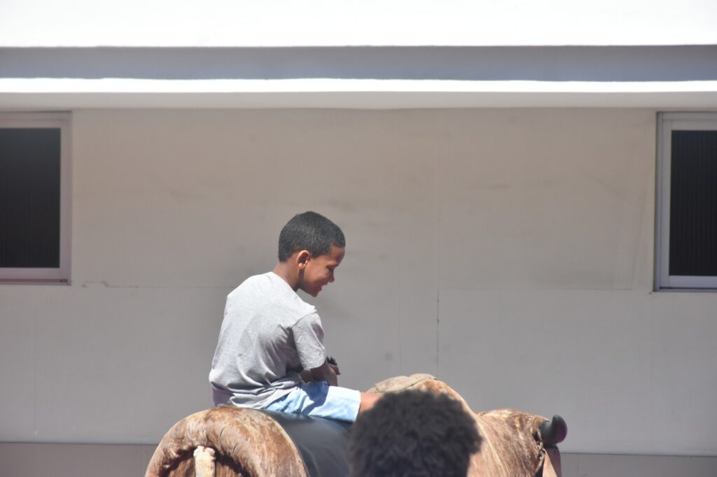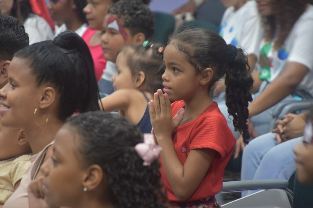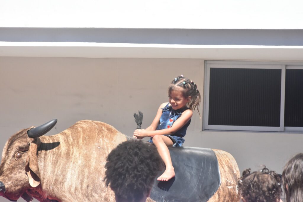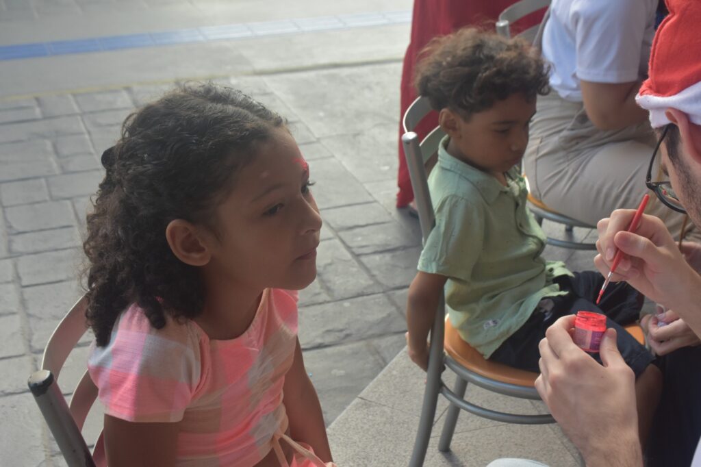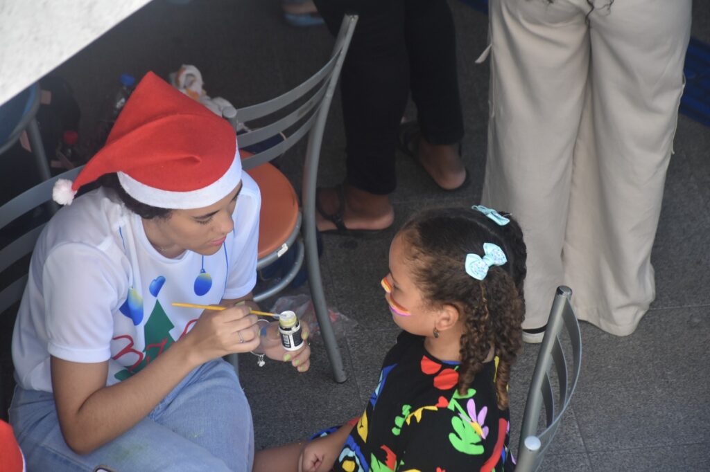 Estefany, 9 anos, é paciente da Clínica Odontológica da FAESA e participou da manhã natalina pela primeira vez. Ela compartilha que o momento favorito do evento foi conhecer outras crianças presentes. Estefany também conta que participar das atividades do touro mecânico e da caça ao tesouro foi uma experiência divertida.