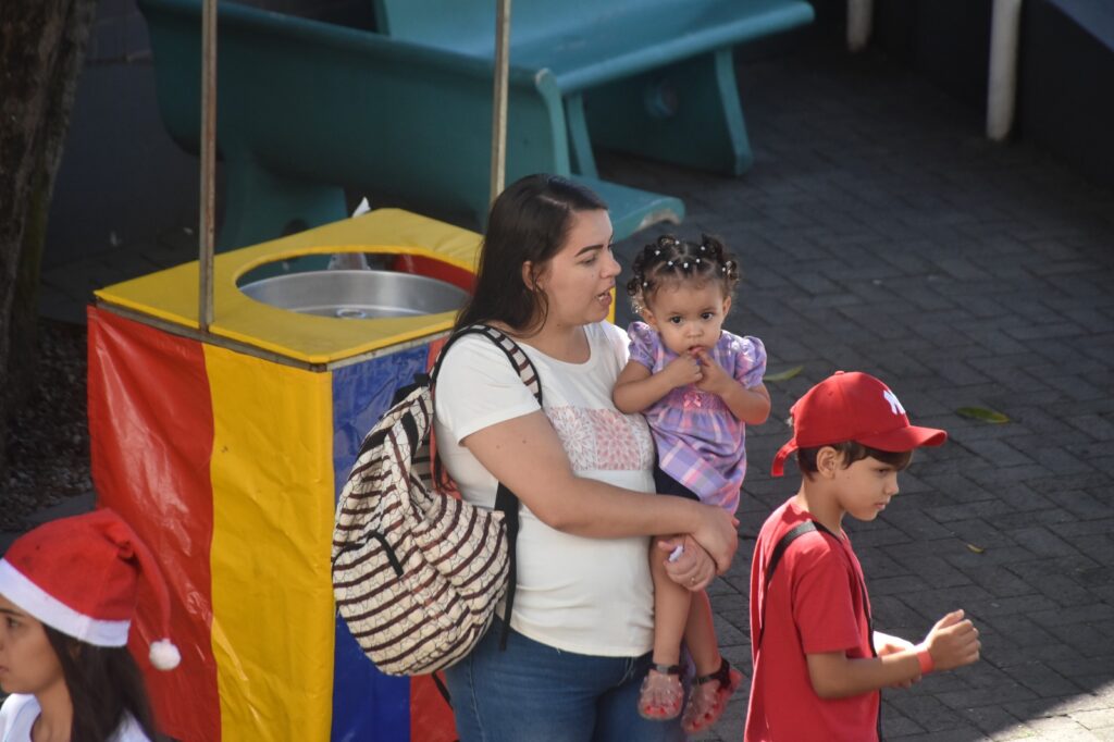 Eliane, 40 anos, mãe de Estefany, descreve o evento como importante para criar laços com outras famílias e interagir com outros pacientes da Clínica Odontológica da FAESA. A mãe compartilha a necessidade da socialização das crianças, destacando o evento como oportunidade de ampliar relações. Eliane ressalta a forma positiva que a iniciativa impacta nas famílias presentes, tendo em vista a alegria e o “espírito natalino” no ambiente.