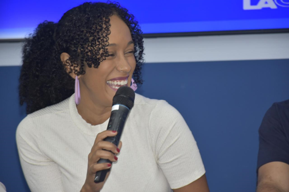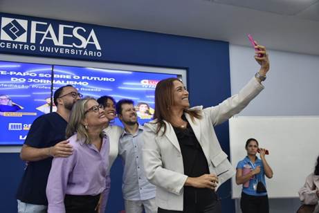 Natália Vicente participou do bate-papo que marcou os 30 anos do curso de Jornalismo da FAESA e o Dia do Jornalista. Egressa do curso, disse que sempre idealizou voltar à faculdade como palestrante e conversar com os alunos. “Foi a realização de um sonho”, confessou.