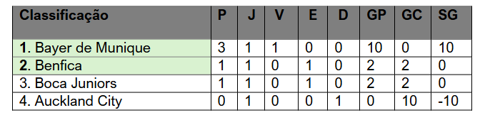 Pelo Grupo C, no domingo (15), o Bayern de Munique atropelou o Auckland City no TQL Stadium com uma goleada incrível de 10 x 0. Os gols dos Bávaros foram marcados por Coman (2x), Sacha Boey, Michael Olise (2x), Thomas Muller (2x) e Jamal Musiala (3x). No outro duelo do grupo, Boca Juniors x Benfica se enfrentaram no Hard Rock Stadium, segunda-feira (16), e protagonizaram um belo duelo. Após início equilibrado, os Xeneizes construíram uma ótima vantagem no primeiro tempo, com Merentiel e Battaglia. Ainda no primeiro tempo, o Benfica diminuiu com Di Maria, de pênalti. Na segunda etapa, Otamendi aproveitou a bela cobrança de escanteio de Kökçü e, de cabeça, empatou para os portugueses, finalizando a partida em 2 x 2.