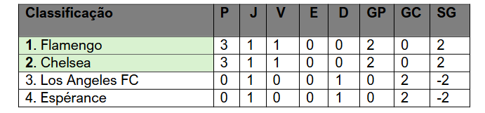 No Grupo D, segunda-feira (16), o Chelsea venceu o Los Angeles FC por 2 x 0 em Atlanta, sem muitas complicações. Os gols dos ingleses foram marcados pelo português Pedro Neto e pelo argentino Enzo Fernández. Já no segundo duelo do grupo, também na segunda-feira, O Flamengo estreou com vitória pra cima do Espérance, na Filadélfia. O craque uruguaio Giorgian De Arrascaeta abriu o placar para o Rubro-Negro no primeiro tempo, após uma bela jogada coletiva. Depois de uma excelente primeira etapa, o Flamengo teve um início de segundo tempo um pouco complicado, com chegadas perigosas do time tunisiano. Mas, após uma troca de passes e belo passe de Jorginho para Luiz Araújo, o camisa 7 da gávea acertou um belo chute para carimbar a vitória do Mengão na estreia.