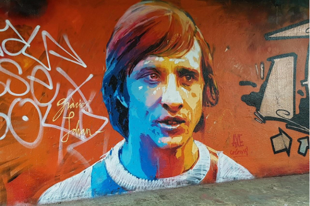 Grafite de Cruyff, ídolo histórico da Holanda e do futebol mundial. (Foto: Pexels; 2025)