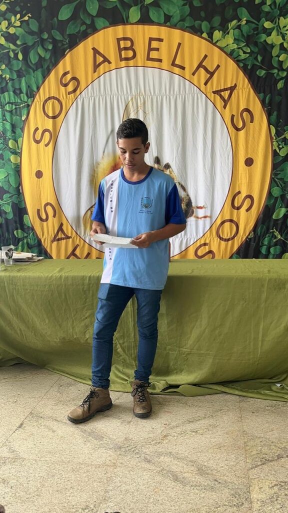 Ele afirma, ainda, que é muito divertido aprender sobre a polinização das abelhas, algo que não sabia que os animais faziam. Weverton ressaltou, também, que uma das partes do projeto que mais gostou foi o “grito de paz e sorte”. Os jovens tinham que escolher qual espécie de abelha seriam. Todos escolheram o zangão, sem saber que ele morre rápido. E foi, justamente, a escolha dele.