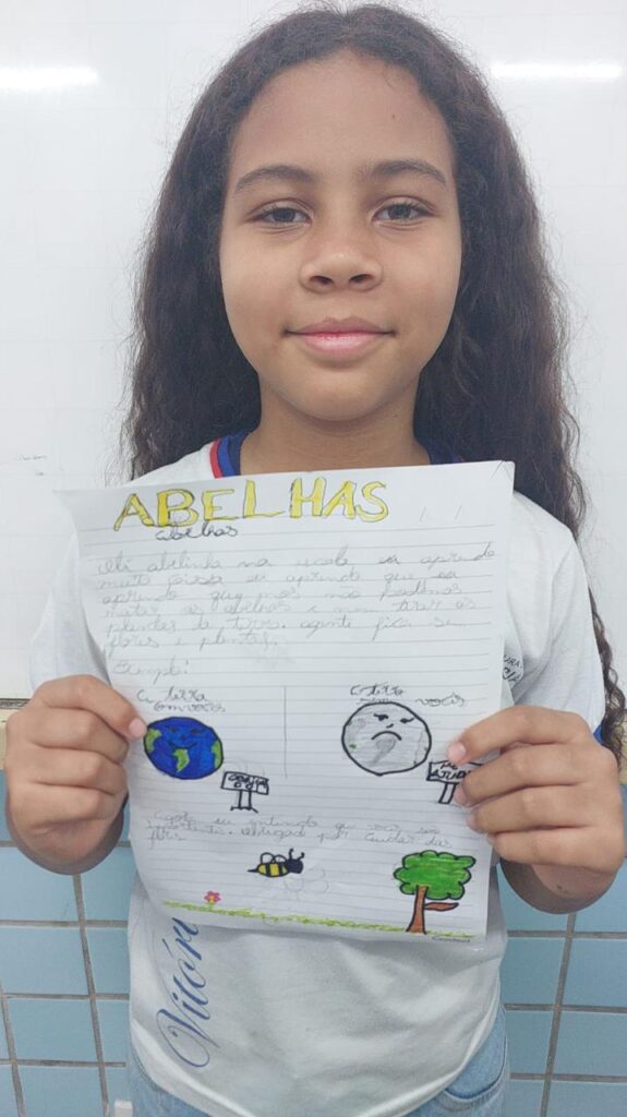 Os alunos entendiam as abelhas apenas como mais um animal e muitas vezes buscavam até eliminar porque não conheciam os benefícios que tinha, chegando a ter medo. Mas, hoje os nossos alunos entendem que as abelhas são fundamentais para o nosso planeta e para a sobrevivência de muitas espécies de plantas, então hoje a visão deles é outra em relação a esse animais