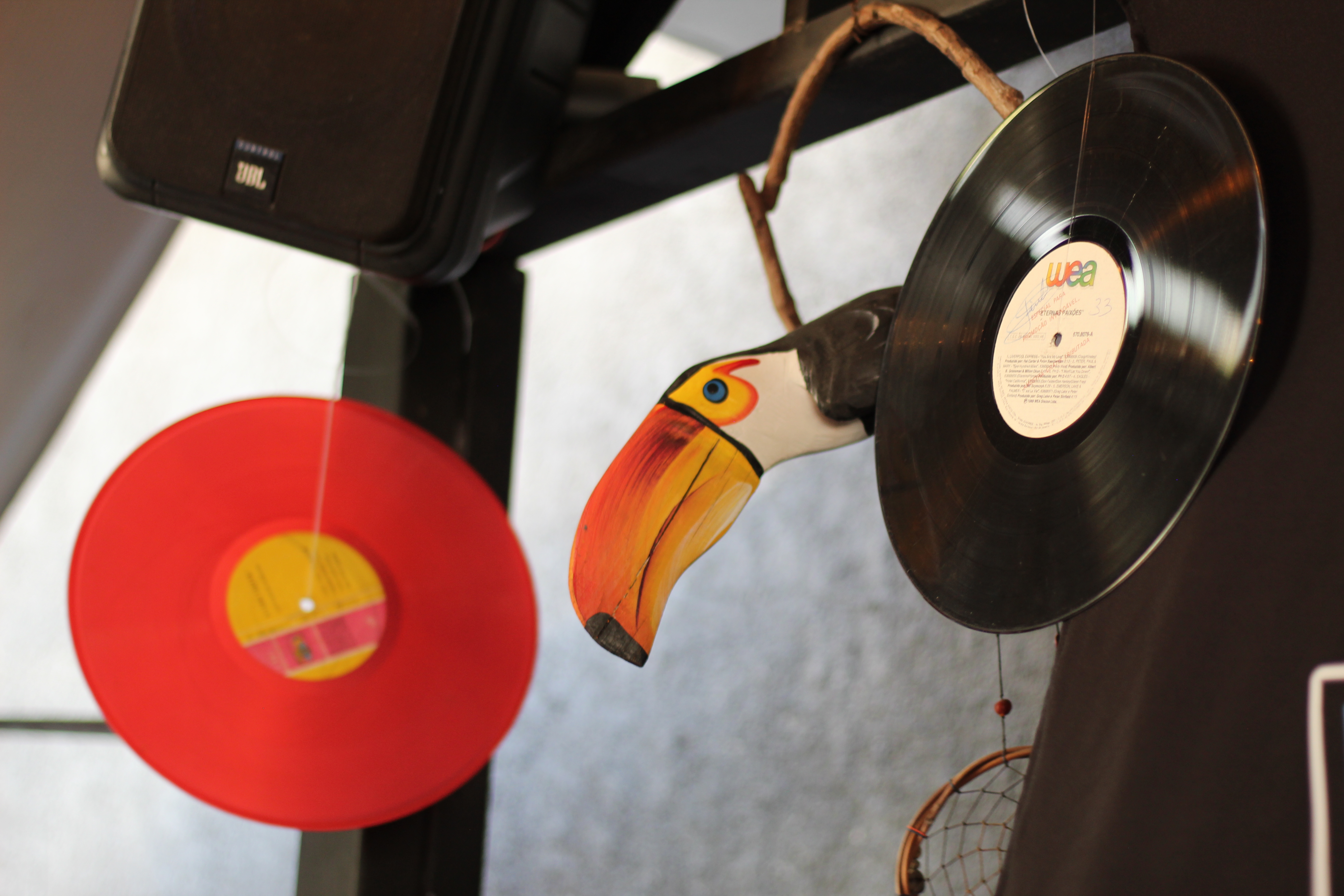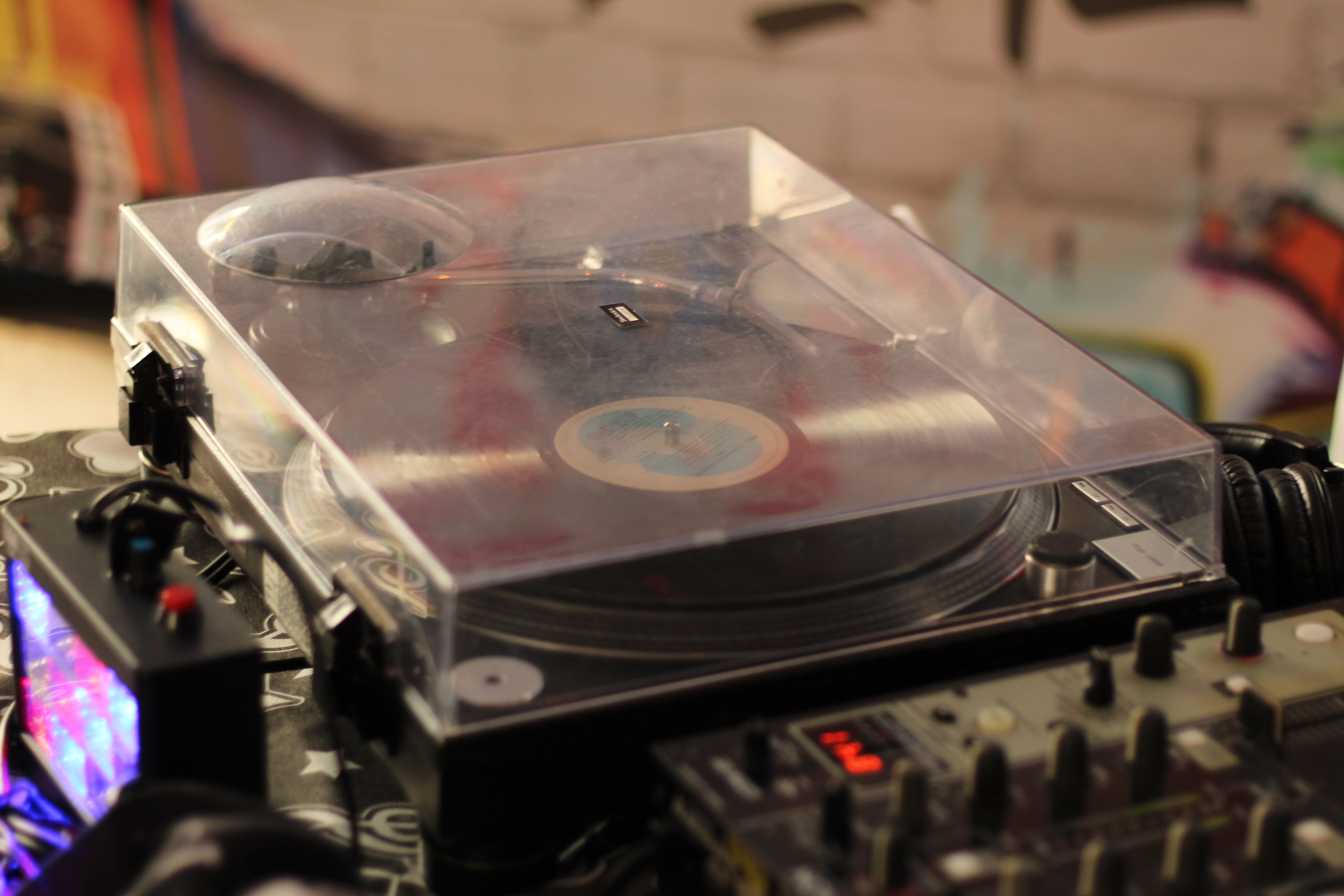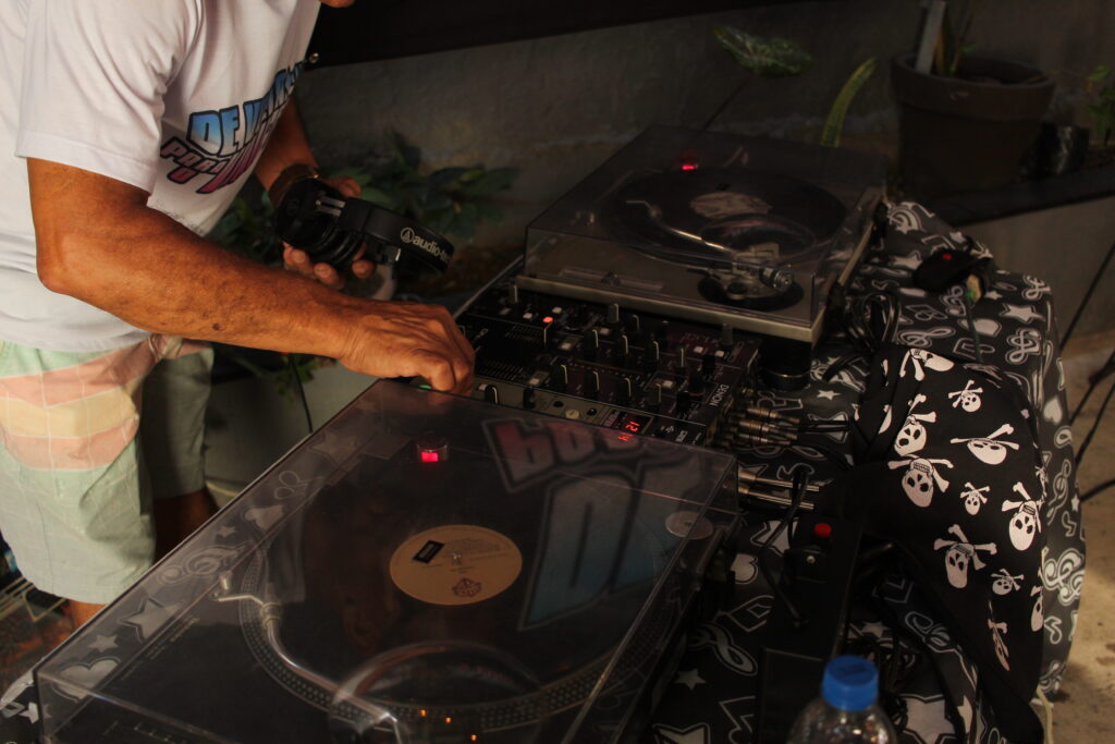 Tenho meu pai como referência. Eu gosto do som do vinil por ser um som diferenciado, bem original. Sou amante mesmo, tenho vitrola, decks e devo ter uns 200 vinis guardados em casa.