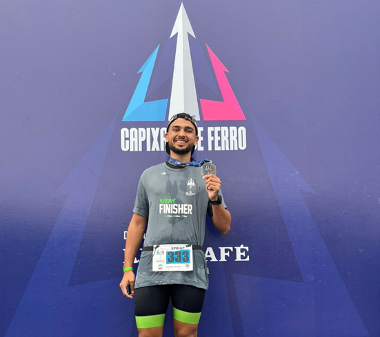 O jovem de 23 anos ficou entre os 10 primeiros colocados na categoria Sprint de 16 a 24 anos e relata que já está treinando para a próxima prova que acontecerá em março de 2026.